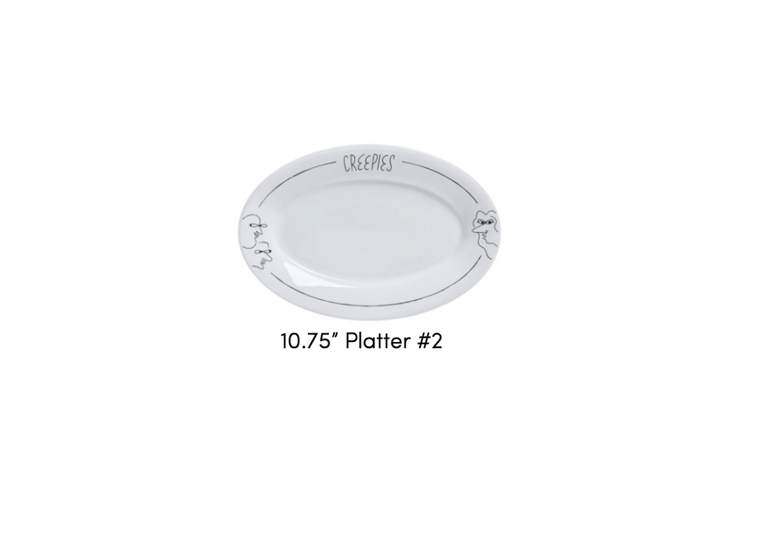 gift card $0.00 creepies shirt / two faces $25.00 creepies shirt / many faces $25.00 tote $20.00 wine key $12.00 10.75" round plate $35.00 8" round plate $27.00 11.5" oval platter $36.00 10.75" oval platter $34.00 9" bowl $32.00